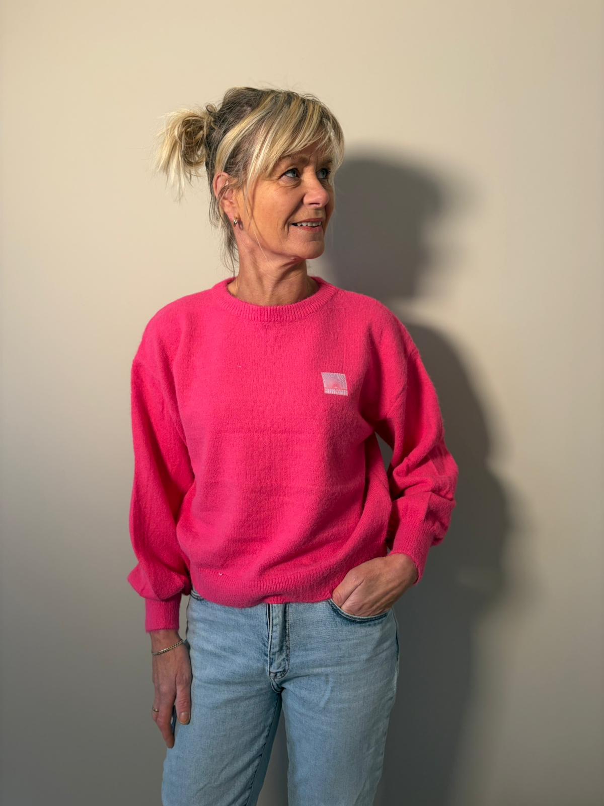 De Amour Knit in geel is een fijngebreide trui en heerlijk warm voor de koude winterdagen. De trui heeft lange mouwen met een hoge, ronde halslijn en een patch met de tekst "Amour" op de borst. Wij raden deze trui aan vanaf maat 36 t/m maat 42.