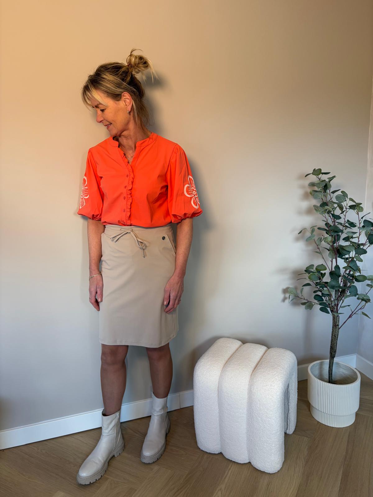 Deze travelblouse heeft korte mouwen met geborduurde details en een ceintuur om meer taille te creëren. Deze blouse van top kwaliteit travelstof is een aanvulling op je casual garderobe en geeft een klassieke touch. De blouse valt goed op maat S = 36. Borstomvang in centimeters zonder dat de stof is uitgerekt: