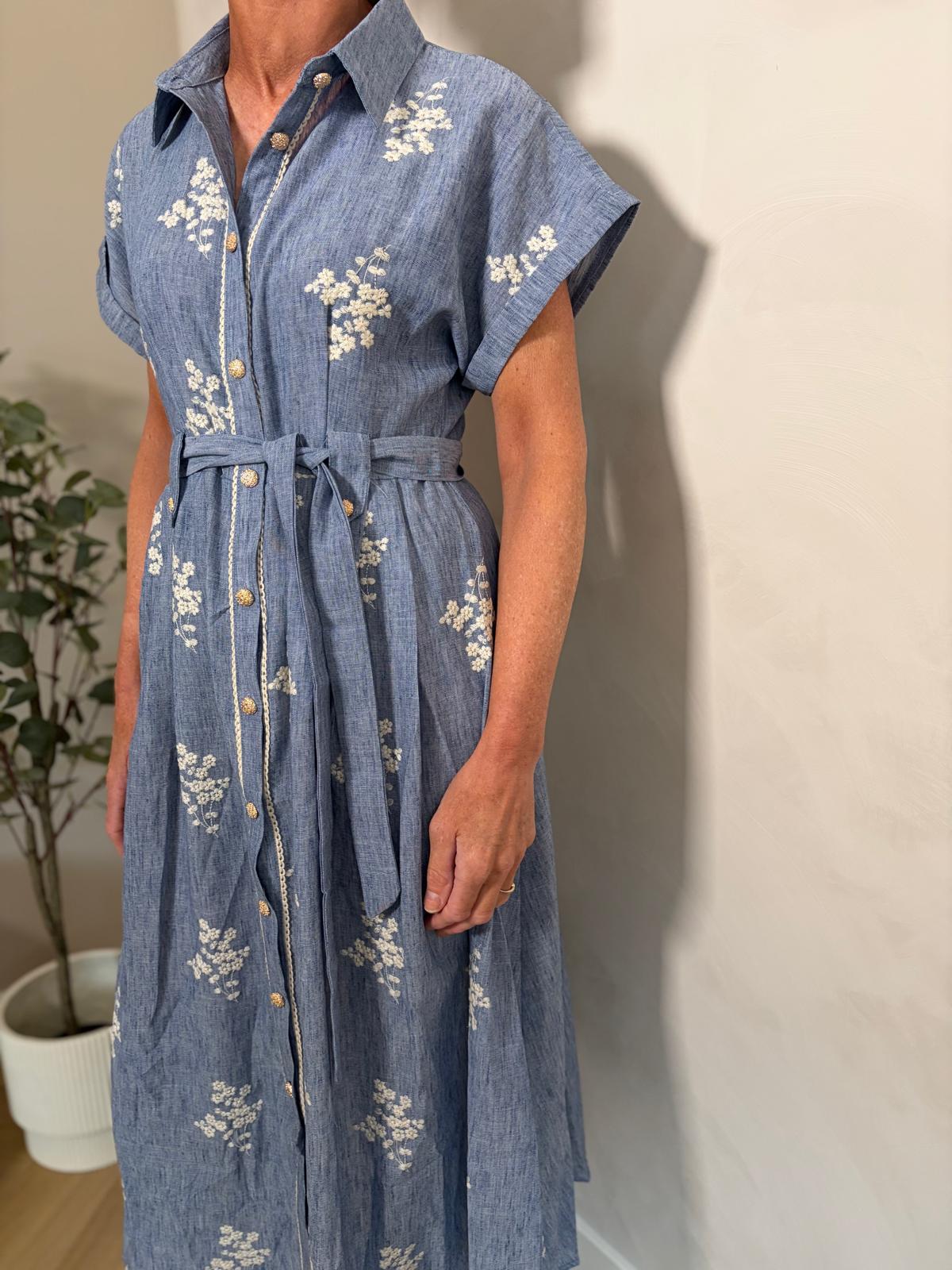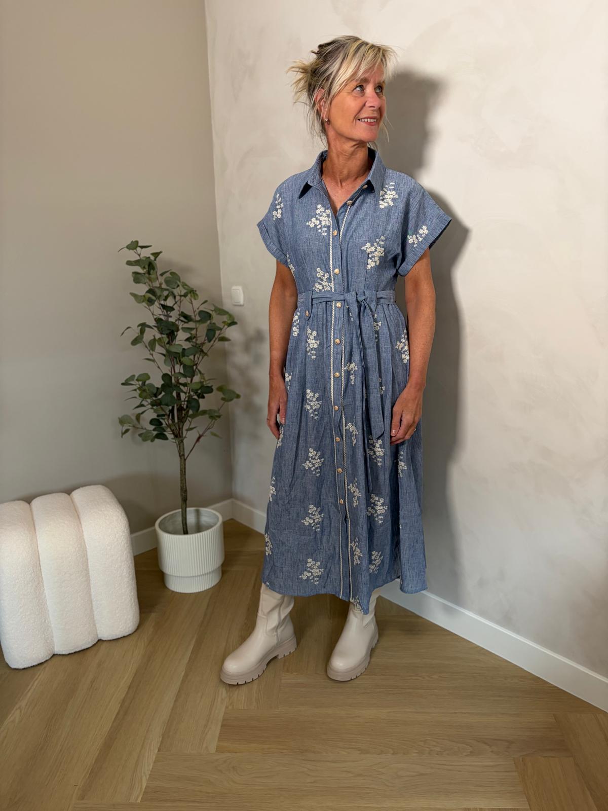 Een beige bewerkte jurk combineert subtiele elegantie met verfijnde details. De bijzondere afwerking geeft het een unieke en stijlvolle uitstraling. Dankzij de zachte kleur en comfortabele pasvorm is de jurk zowel chic als draagbaar voor verschillende gelegenheden.