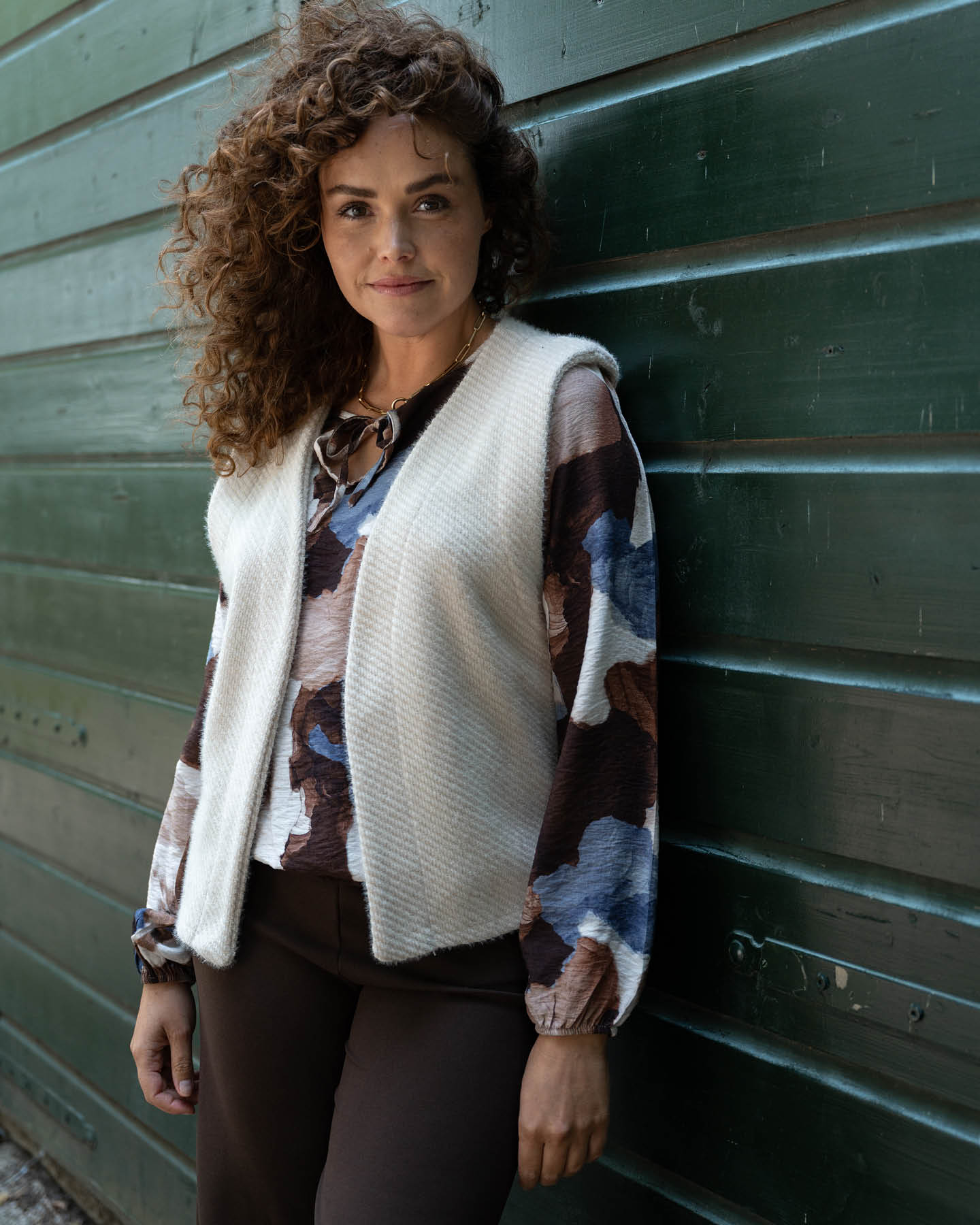 Lexi, de blouson met een speelse striksluiting en een elastiekje voor een blousend effect. De geweven viscose structuur kwaliteit geeft een rijke uitstraling.