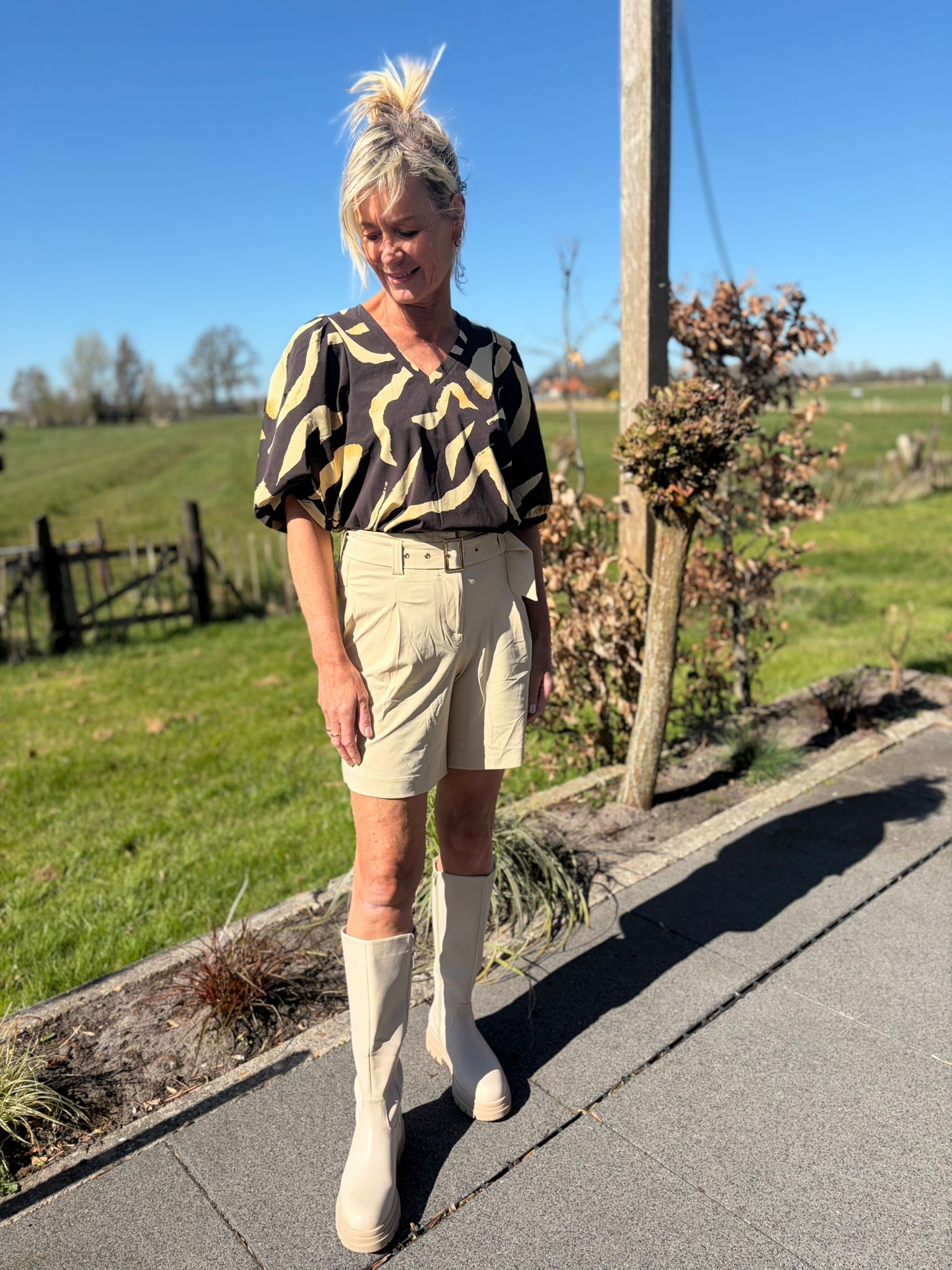 Stijlvolle top met opvallende print gemaakt van soepel travelstof en valt perfect op maat. Kreukvrij, comfortabel en perfect voor een frisse en elegante look.