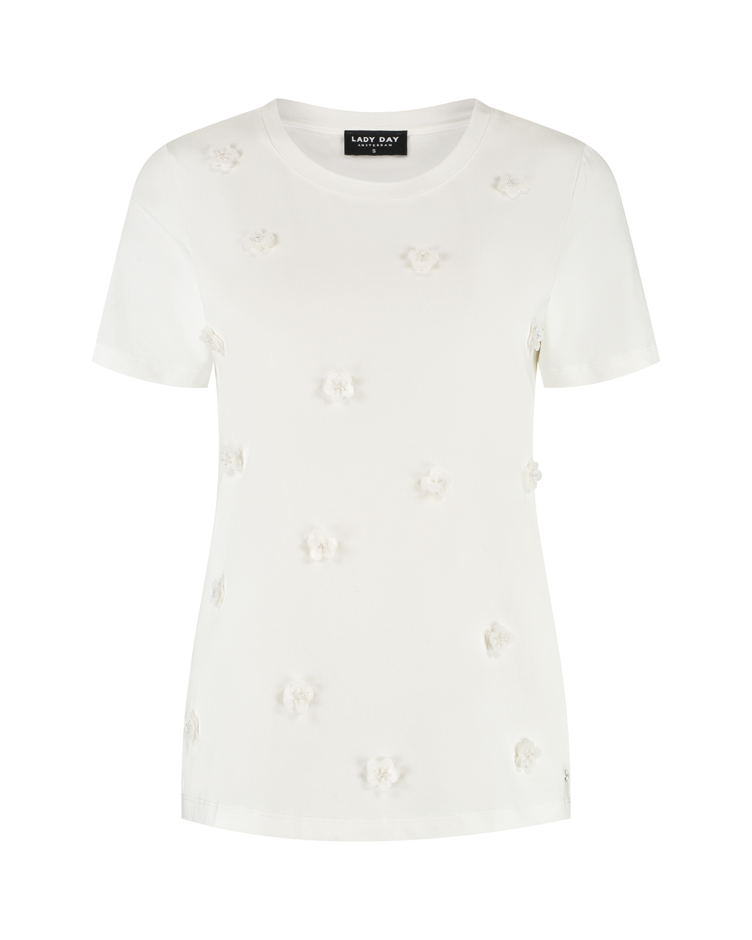 Het t-shirt Lottie is een recht vallend model met korte mouwen en een ronde hals. De top valt goed op maat en is leuk te combineren met een travelstof broek van Lady Day.
