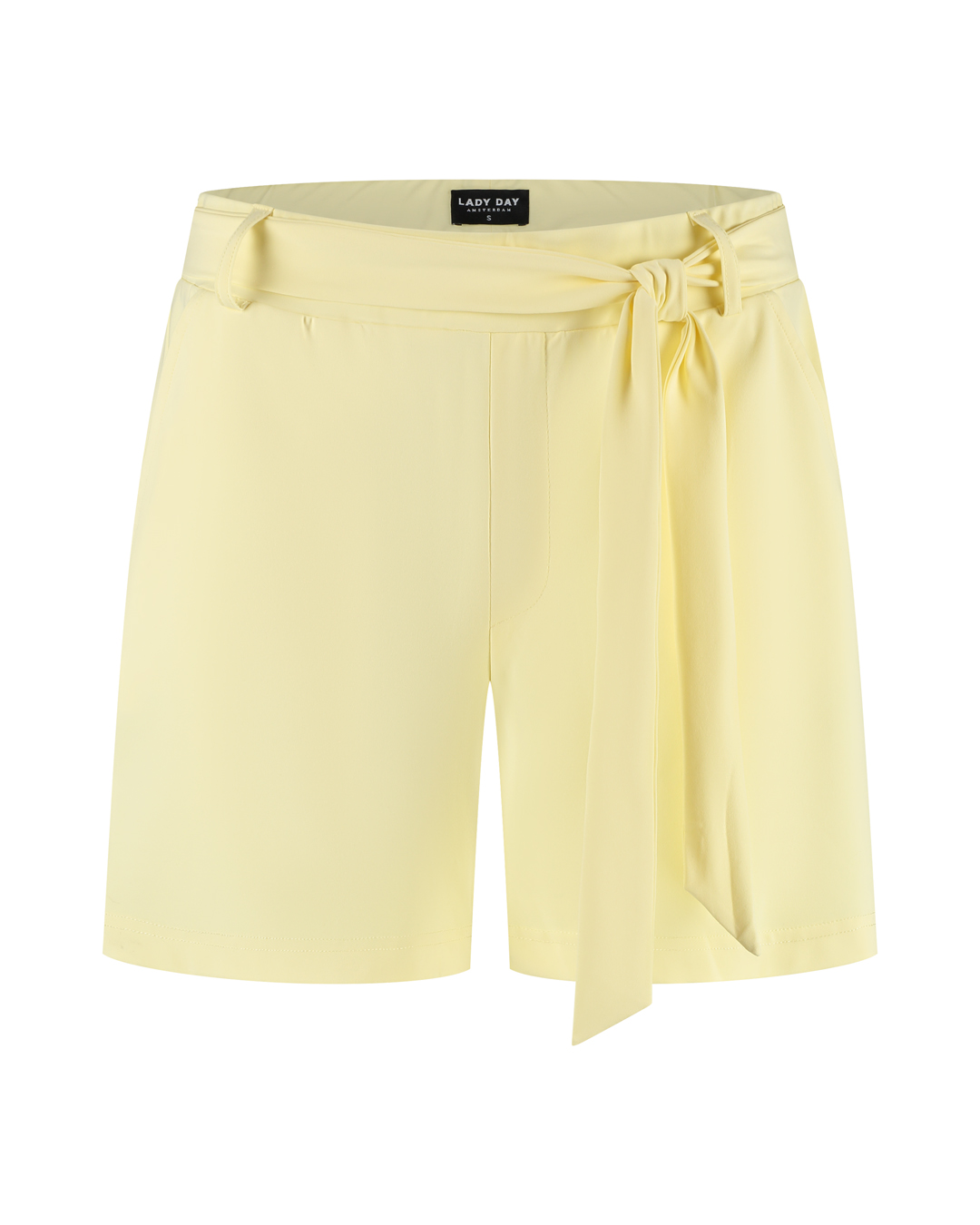Stijlvolle korte broek in een zachte butter yellow tint gemaakt van comfortabele travelstof en valt ruim. Luchtig, stretchy en perfect voor een frisse en zomerse look.