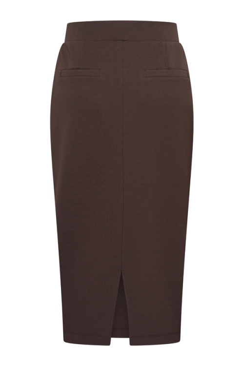 Mooie winterse rok van het merk Mi Piace. De rok is uitgevoerd in het donkerbruin en voorzien van een sweat stof, een stevig geweven stof die comfortabel zit en chique oogt. De rok valt klein, we adviseren een maat groter.