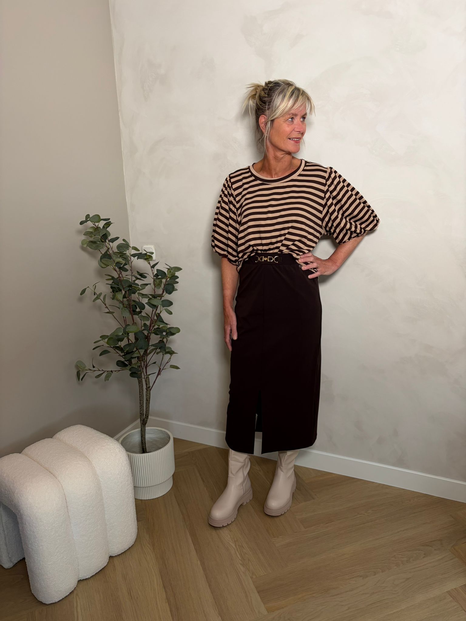 Streep shirtje bruin beige