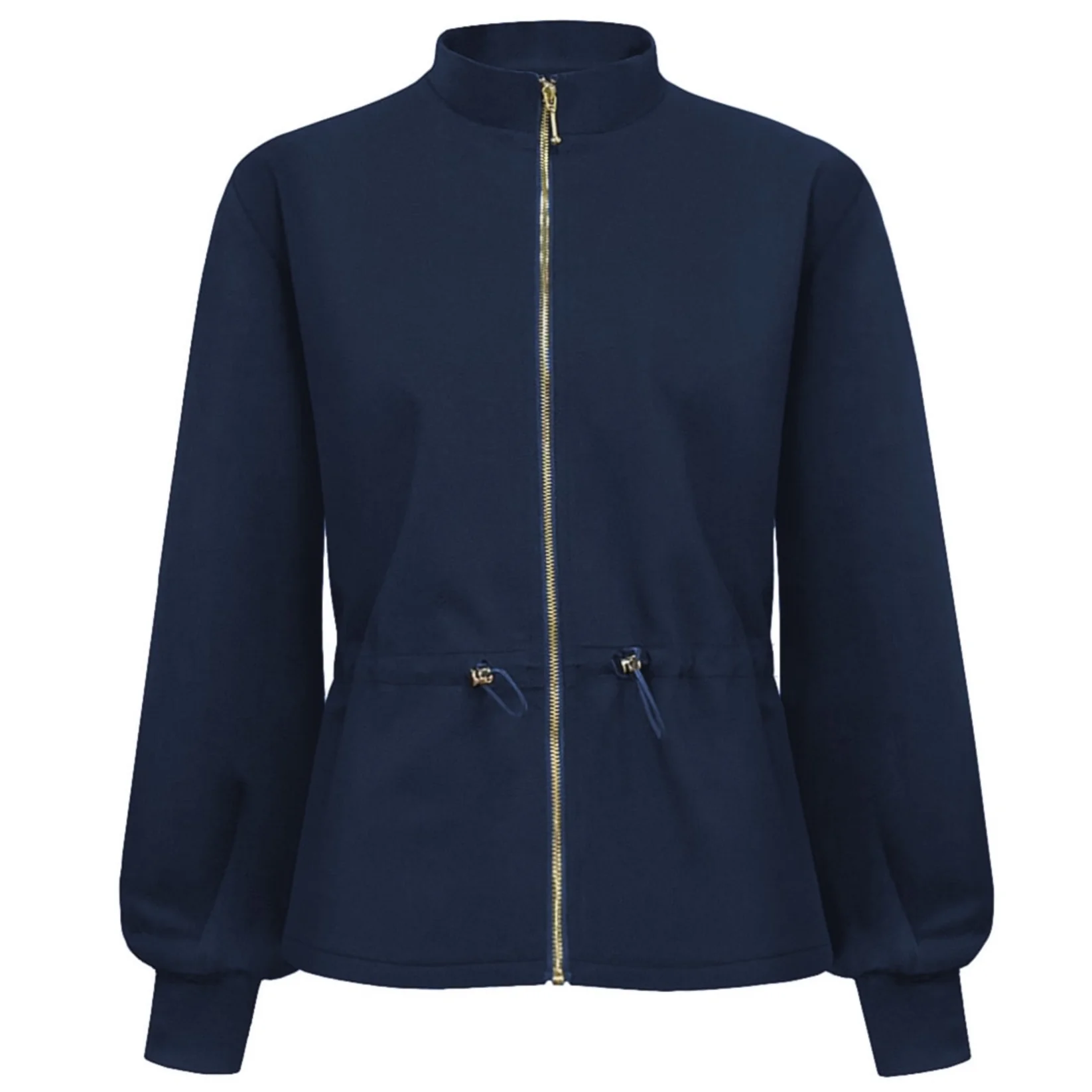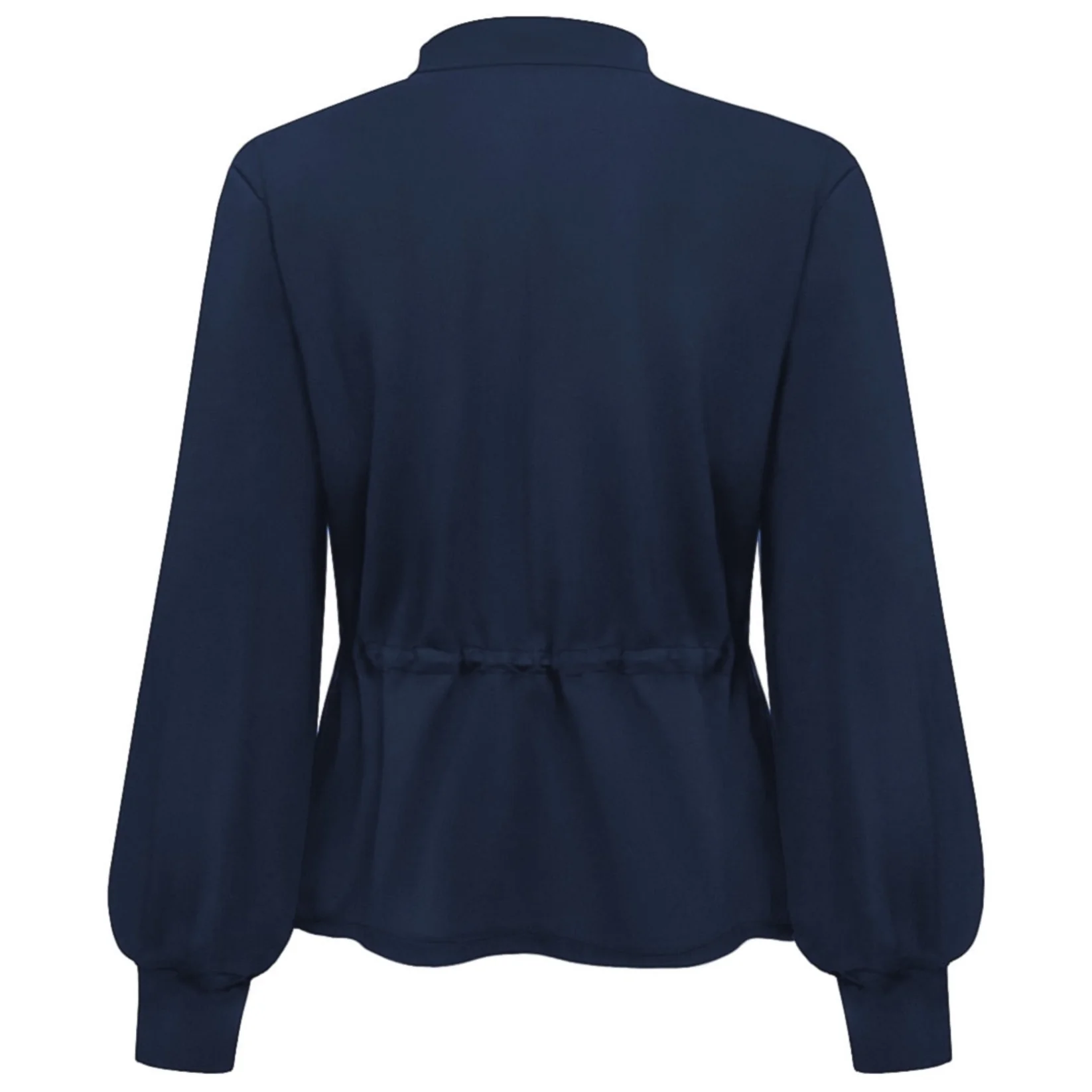 Jasje met elastisch koord om te tailleren. Het jackje heeft een ritssluiting en lange mouwen met een elastisch manchet. Deze twill stof is een stevig geweven stof die comfortabel zit en chique oogt.