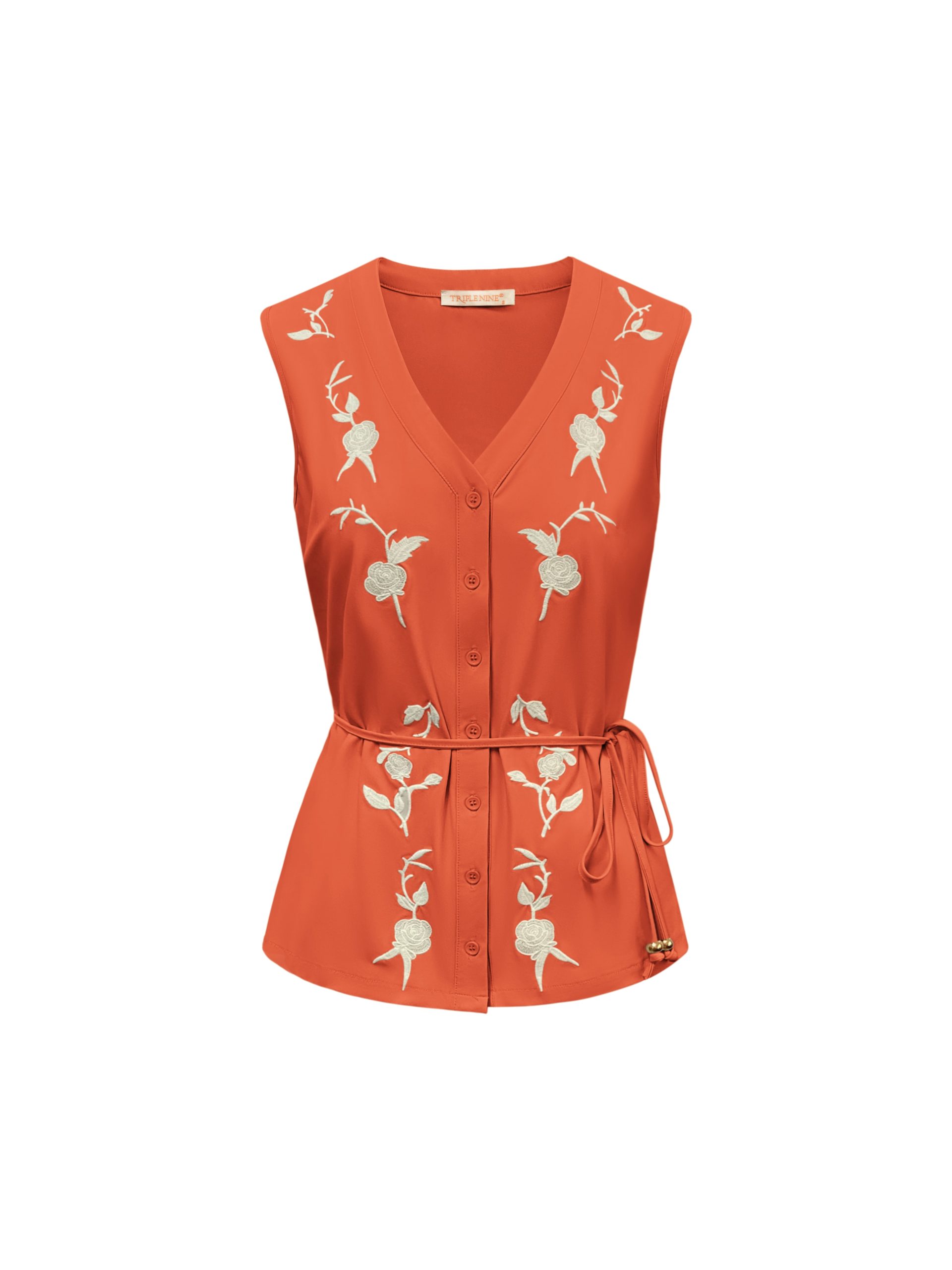 Triple Nine mouwloze blouse embroidery 5938 koraal