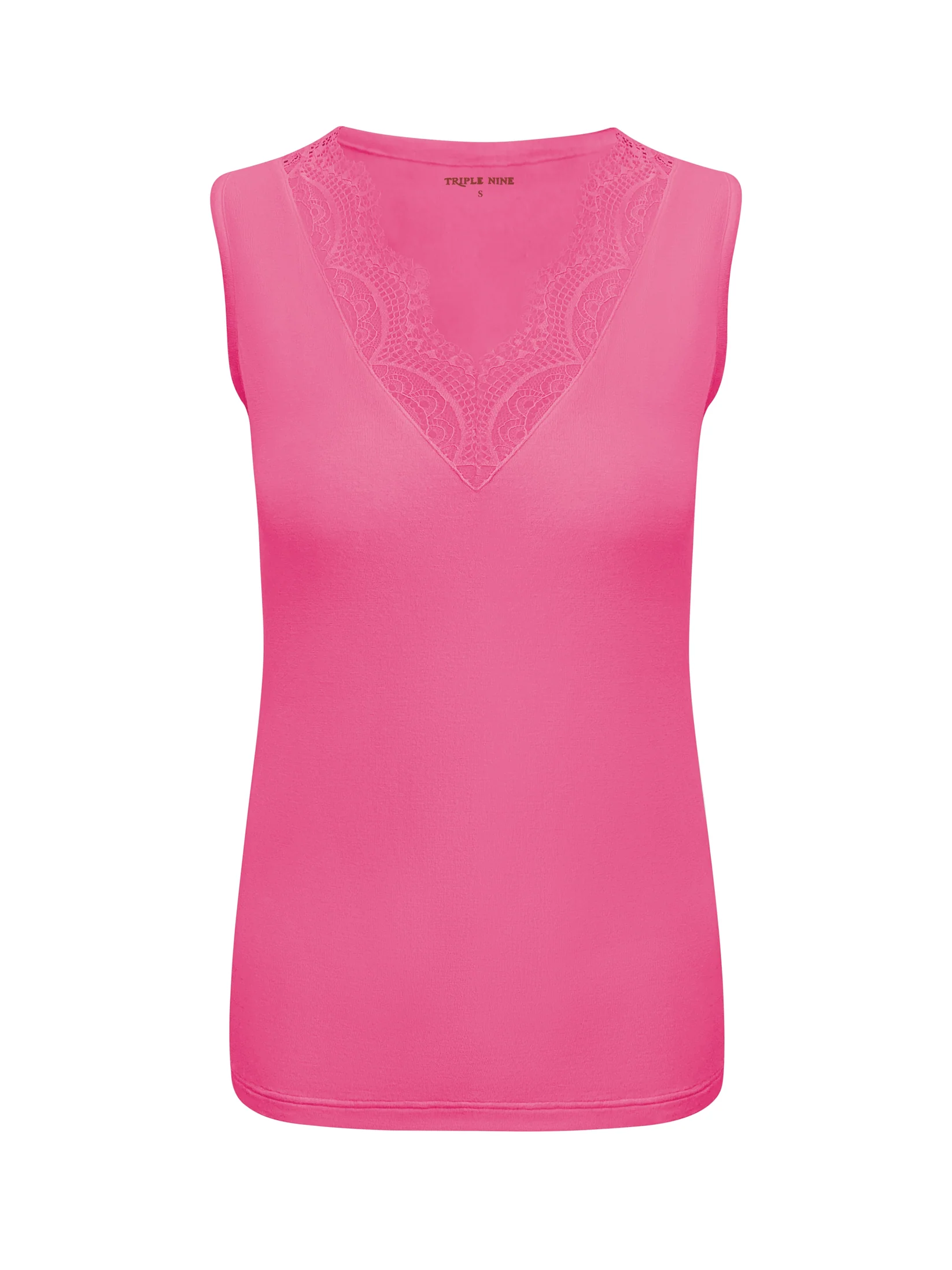 Triple Nine top mouwloos cashmere fuchsia 9005