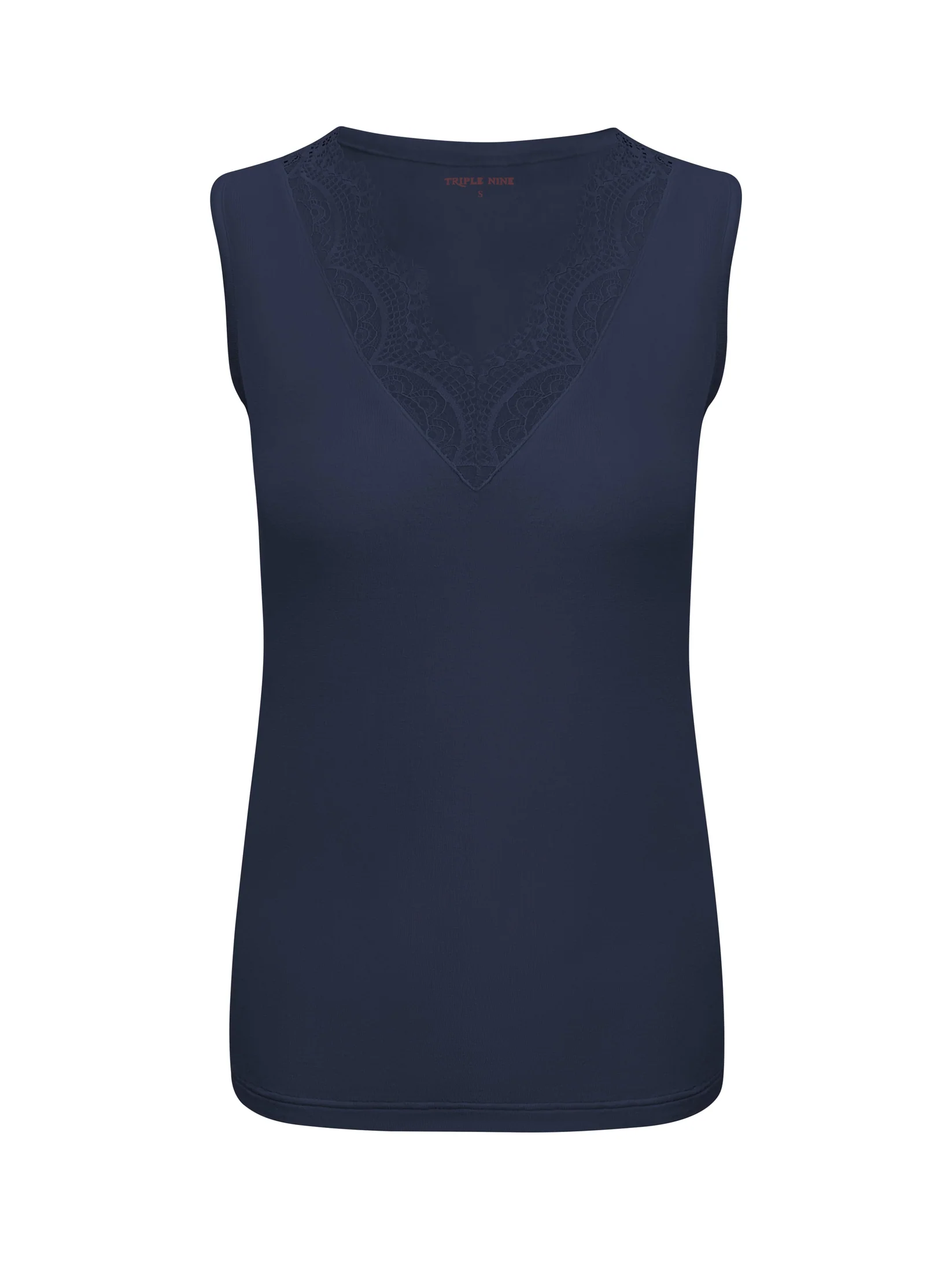 Nieuw toegevoegd aan de Triple Nine collectie. De stof is heerlijk dun en zacht. Draag deze top onder een blouse of blazer, zonder dat deze doorschijnt.