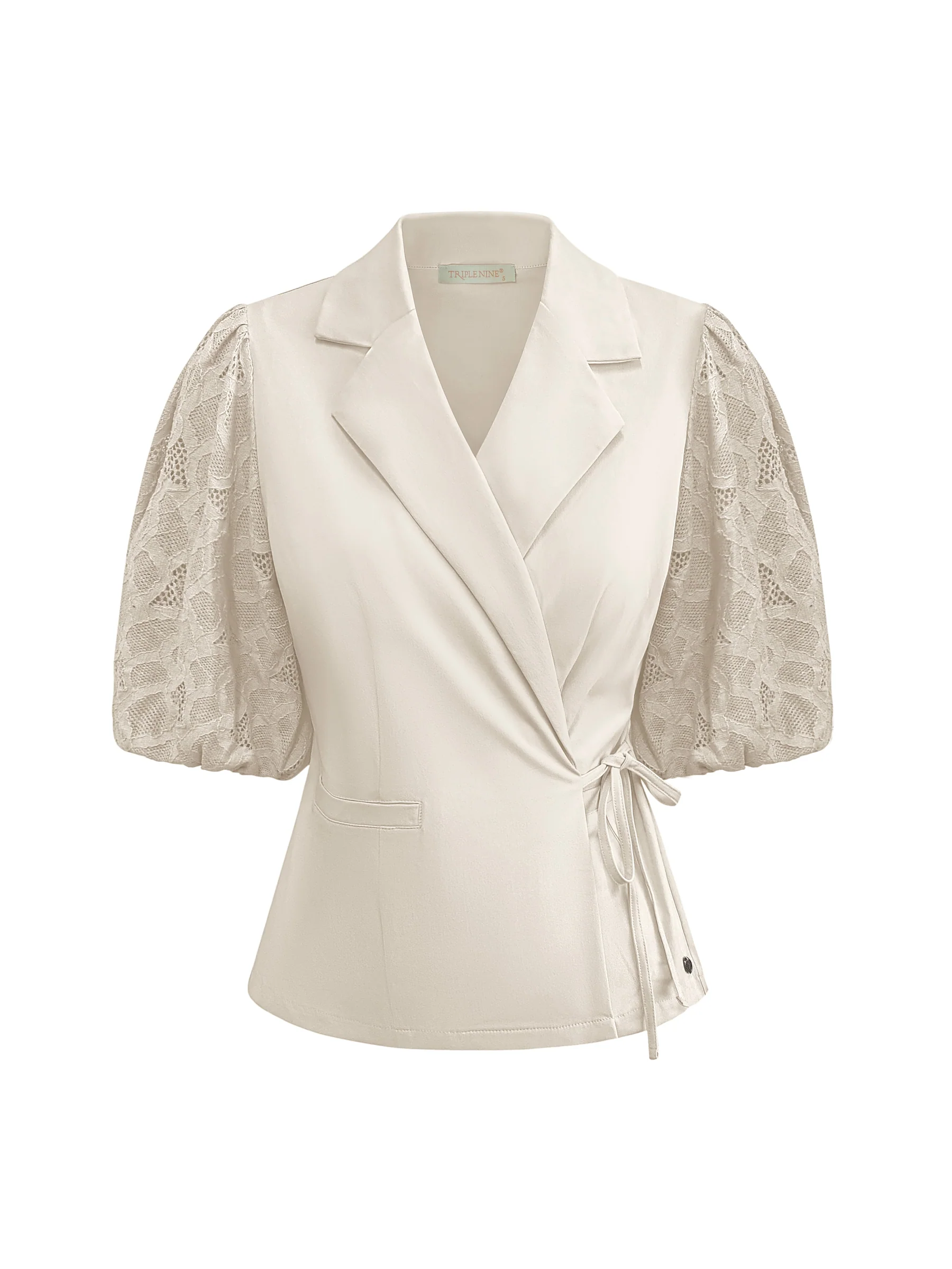 Mooie cross body blazer met korte mouwen en satijnen afwerking. De blazer heeft een pofmouw en een ceintuur om de middel voor extra taille. Draag de blazer met een van de Triple Nine travelbroeken voor de complete office look! De blazer valt goed op maat S = 36. Borstomvang in cm zonder dat de stof opgerekt is:
