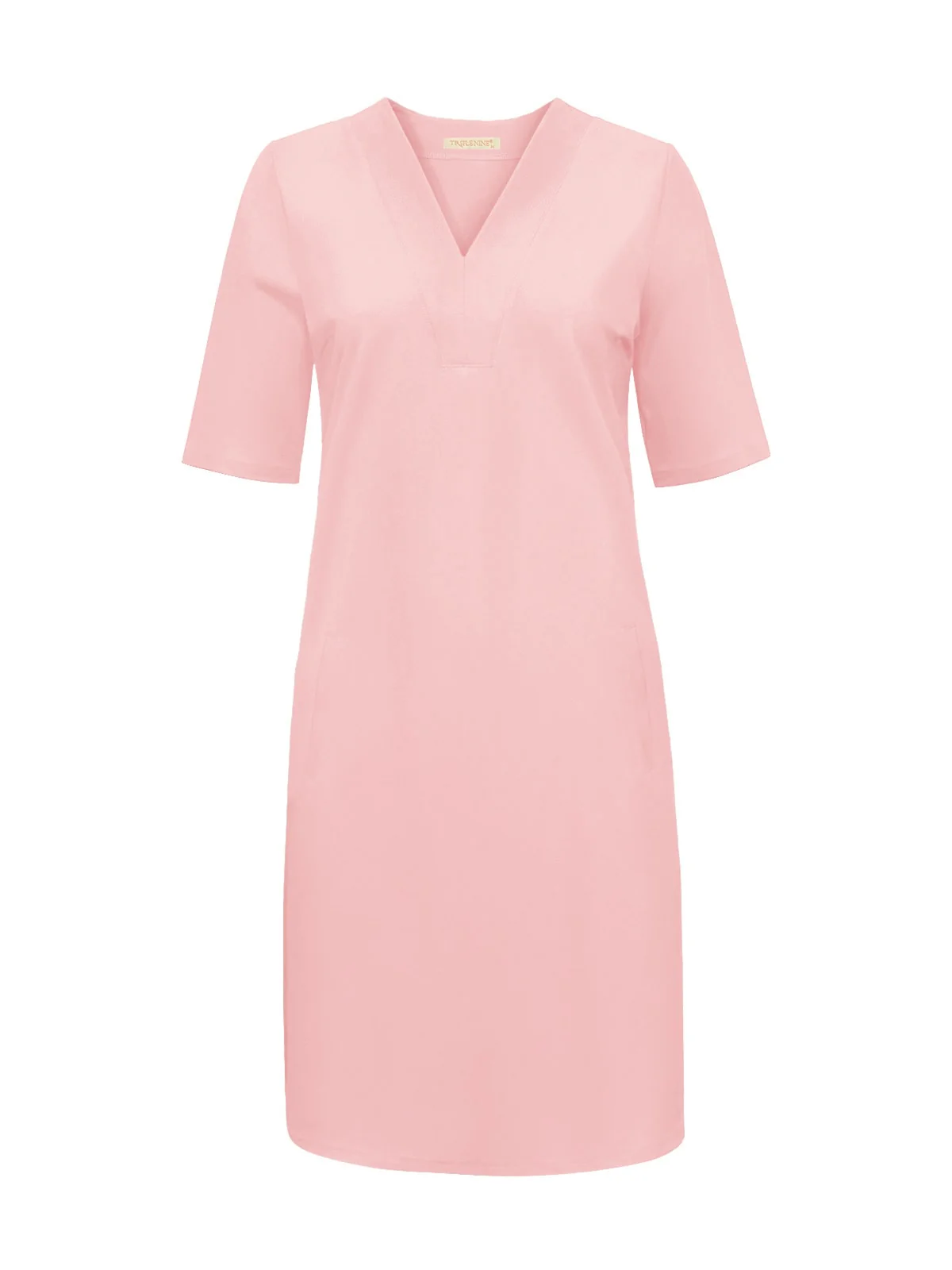 Een perfecte basic jurk van Triple Nine. De jurk met korte mouwen en ronde kraag en v-hals heeft twee steekzakken en valt tot boven de knie. Dit item van top kwaliteit travelstof valt iets ruim.