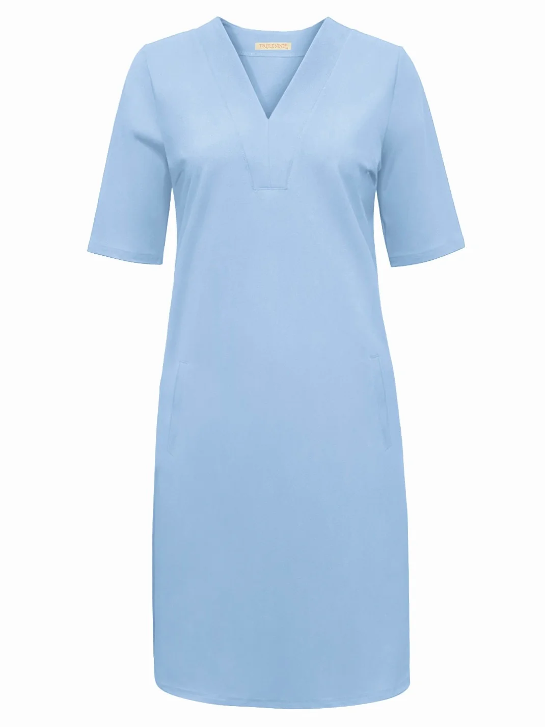 Een perfecte basic jurk van Triple Nine. De jurk met korte mouwen en ronde kraag en v-hals heeft twee steekzakken en valt tot boven de knie. Dit item van top kwaliteit travelstof valt iets ruim.
