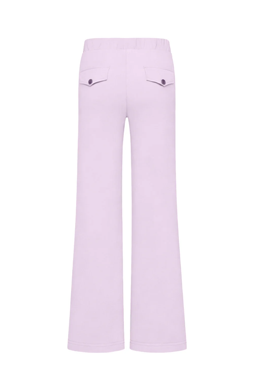 De broek sluit perfect aan bij de heupen en billen, terwijl de pijpen wijd en recht zijn. De elastische tailleband draagt bij aan het comfort, en de steekzakken aan de voorkant en faux paspelzakken aan de achterkant geven de broek een stijlvolle en praktische uitstraling.