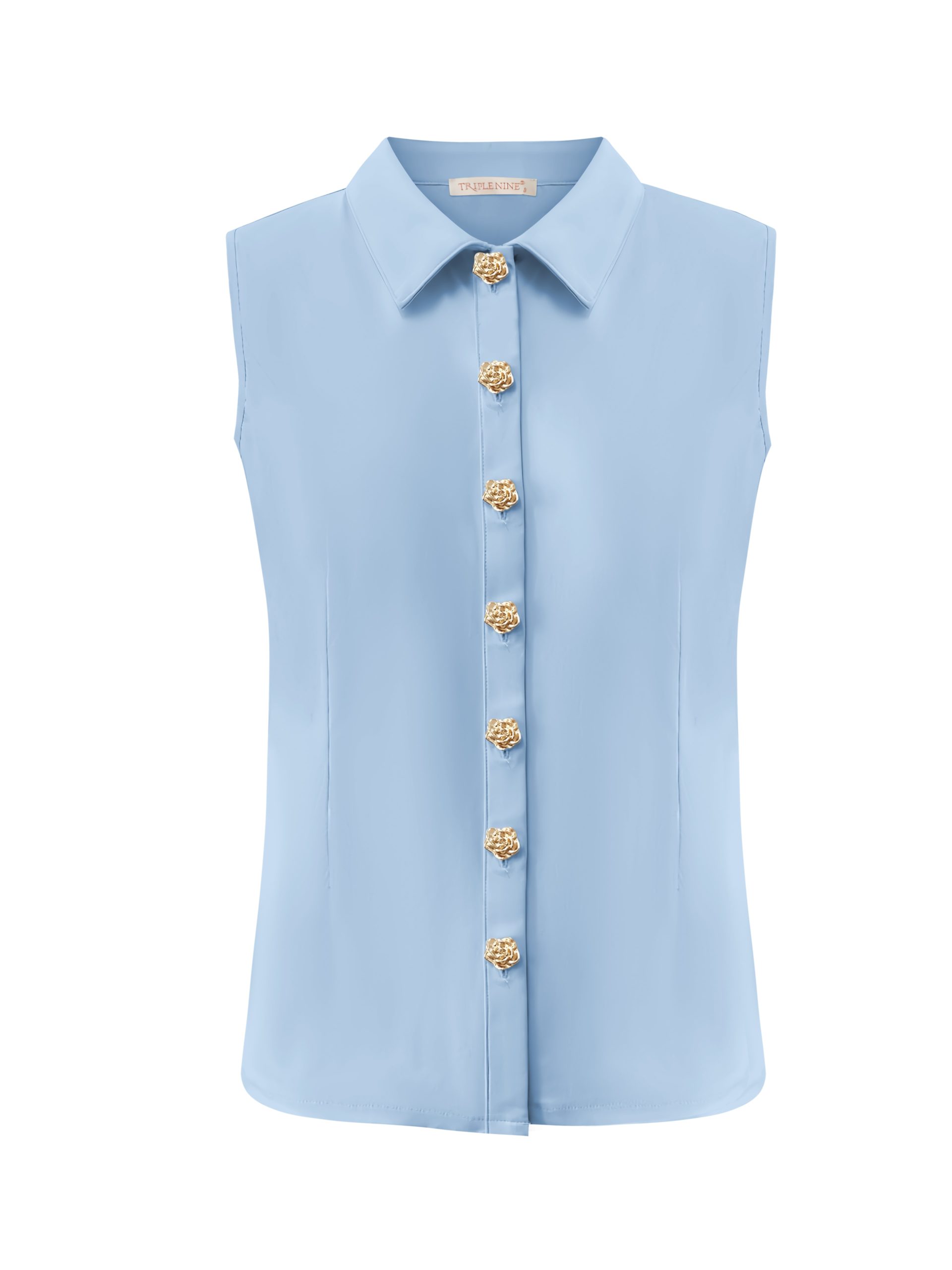 De mouwloze blouse heeft een kraag met prachtige gouden knopen. De blouse valt goed op maat S = 36. Borstomvang in cm zonder dat de stof opgerekt is: