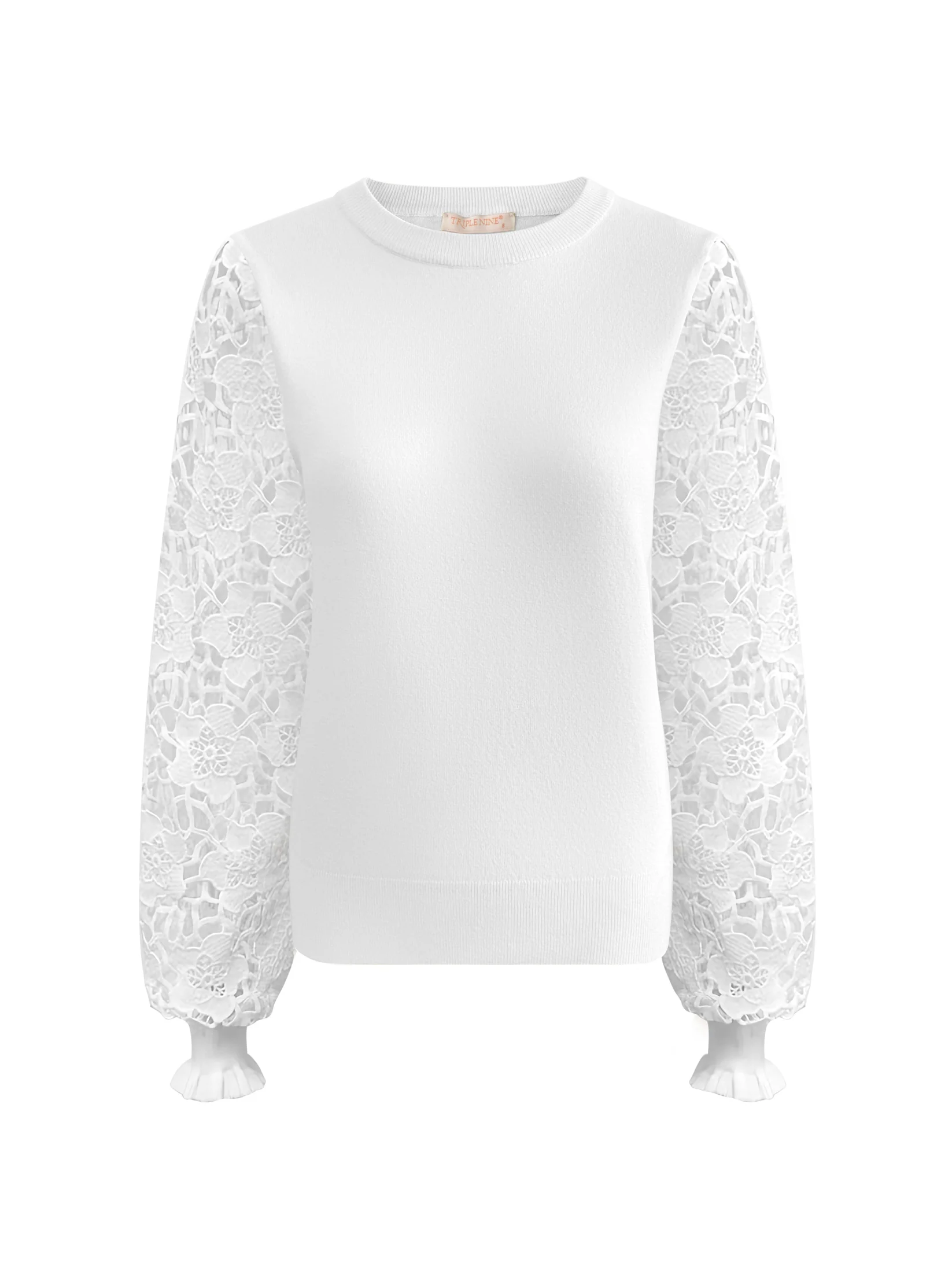 Triple Nine trui lace sleeves 9006 white